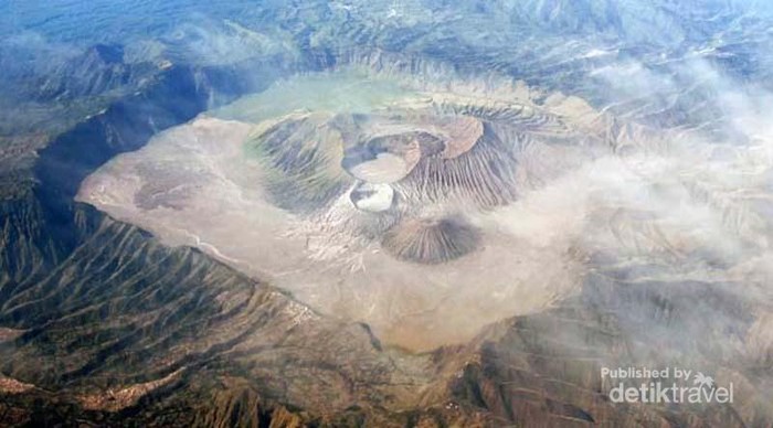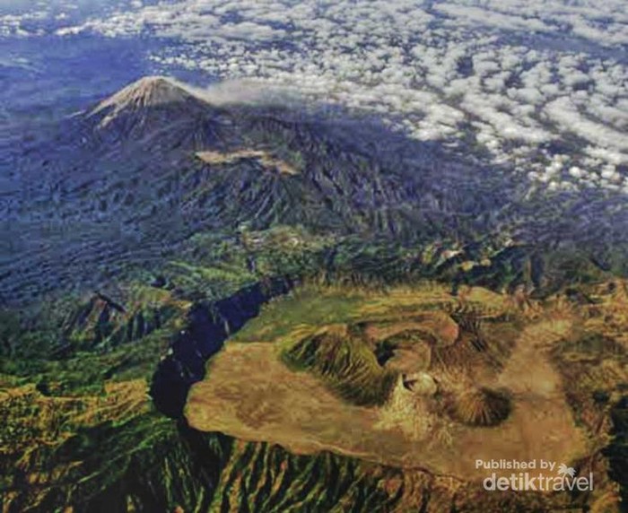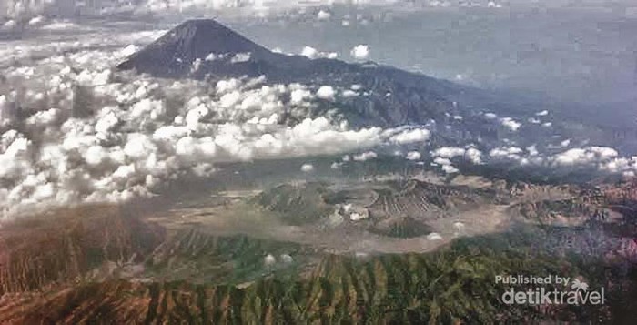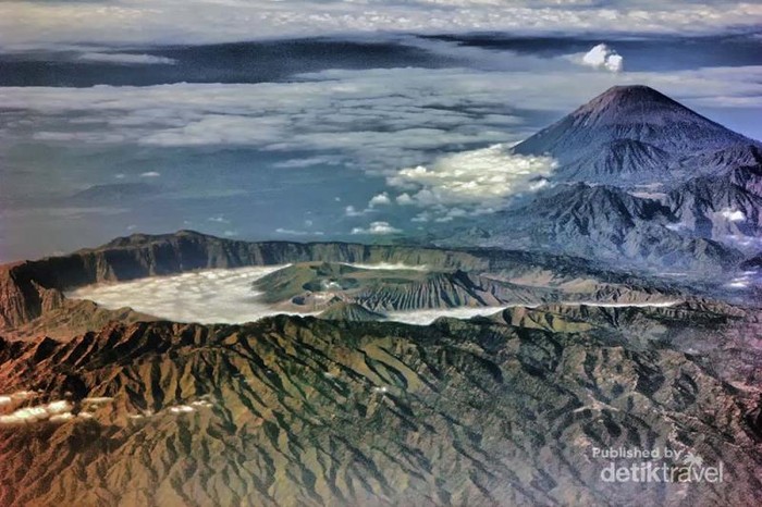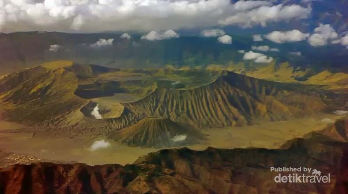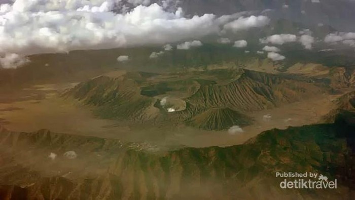 Tak hanya bisa dinikmati dari daratan, kecantikan Bromo juga terpancar dari udara. Foto-foto ini diambil dari pesawat. Indahnya!