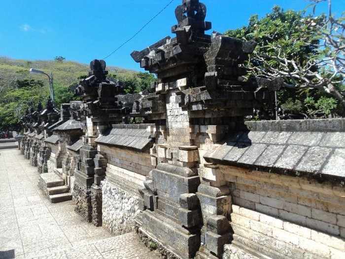 Sebuah pura tampak berdiri kokoh di tepi tebing. Amazing!!!