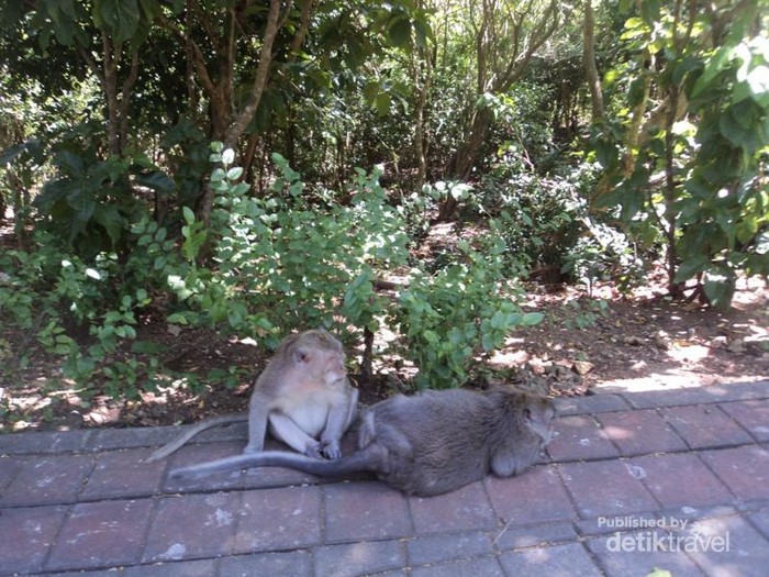 Nah, ini dia keunikan lain Pura Uluwatu, yakni monyet yang berkeliaran di area pura. Jadi, harap hati-hati.