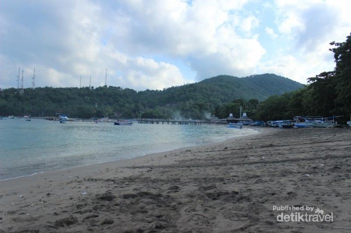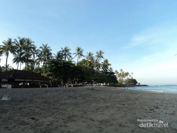 Pada pagi hari, suasana masih sepi dan cocok untuk berendam sambil melihat pemandangan sekeliling. Pantai ini memang indah dilihat dari sisi manapun.