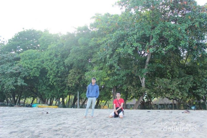 Pohon-pohon rindang berjejer di sepanjang bibir pantai. Tempat ini sering digunakan wisatawan untuk berfoto.