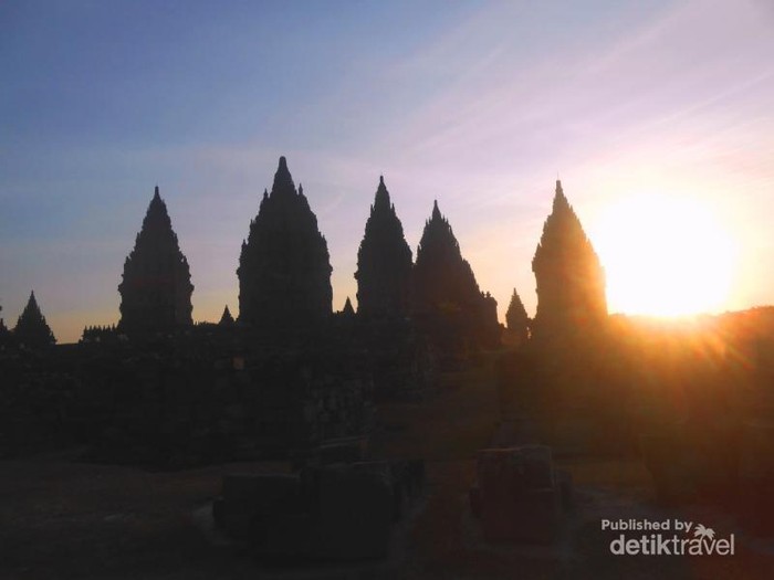 Bias mentari yang akan terbenam menambah keindahan Prambanan yang penuh legenda dan menarik para wisatawan untuk menikmatinya.