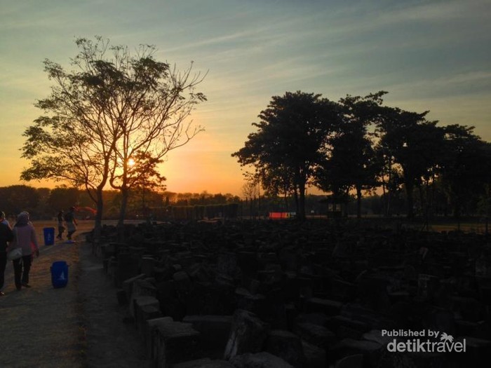Wisatawan lokal, apalagi wisatawan asing sangat menantikan sunset bertengger di antara candi-candi Prambanan yang eksostis dan fantastis.