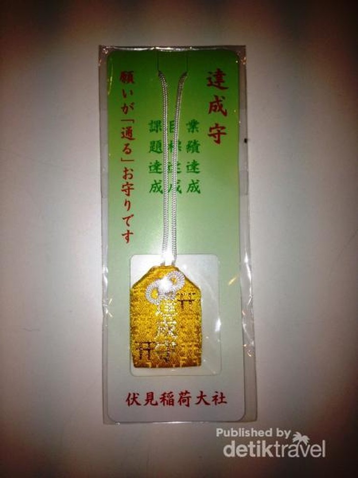 Fushimi Inari memang dikenal sebagai kuil untuk peruntungan karir. Saya pun membeli jimat achievement atau pencapaian seharga 1.000 JPY atau Rp 115.000,- ini disana.
