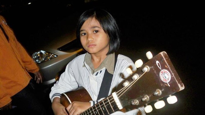 Pengamen cilik di waktu malam di Jl. Asia Afrika