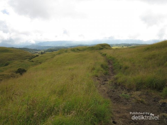 Melintasi salah satu jalur di luasnya Sabana Rinjani