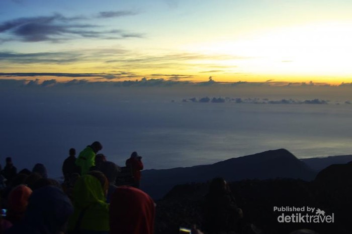 Menunggu Sunrise, Saat telah mencapai puncak Gunung Rinjani, Ini momen yang paling ditunggu dipuncak, melihat samudra awan dan terbitnya matahari.