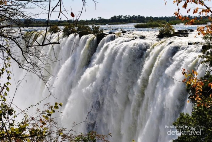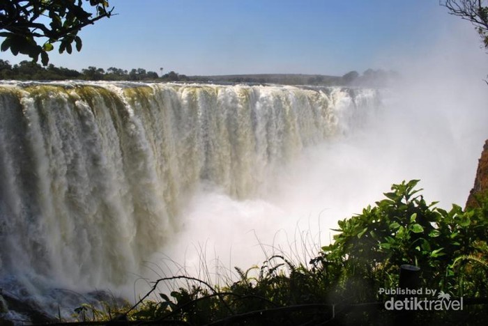 Dengan lebar sekitar 1,6 km, Air Terjun Victoria berada di perbatasan dua negara Zimbabwe dan Zambia, paling direkomendasikan masuk melalui Zimbabwe.