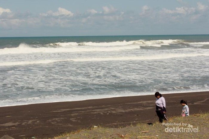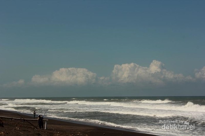 Beberapa pemancing sedang memancing ikan di tepi Pantai Pandansari.