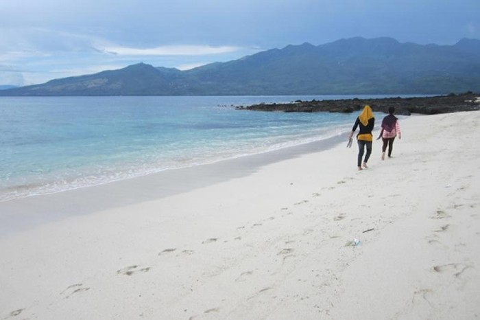 Pasir putih di Pulau Nuca Molas berlatar belakang pulau flores. sepanjang perjalan anda akan di suguhi pantai berpasir putih dan laut bening kebiruan