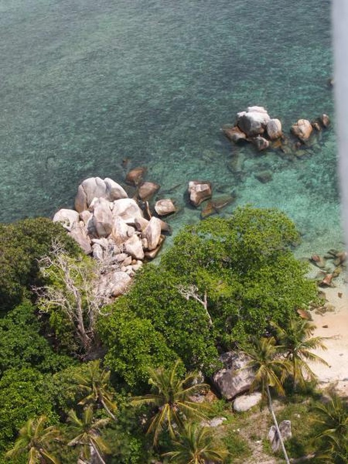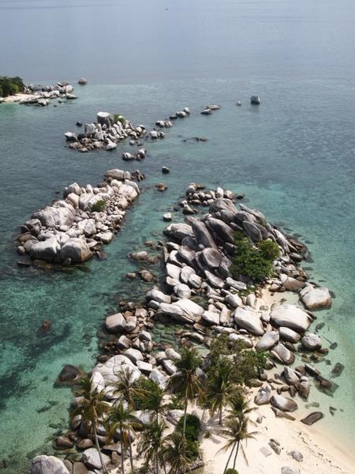 Banyak batu berserakan di pantai Pulau Lengkuas.