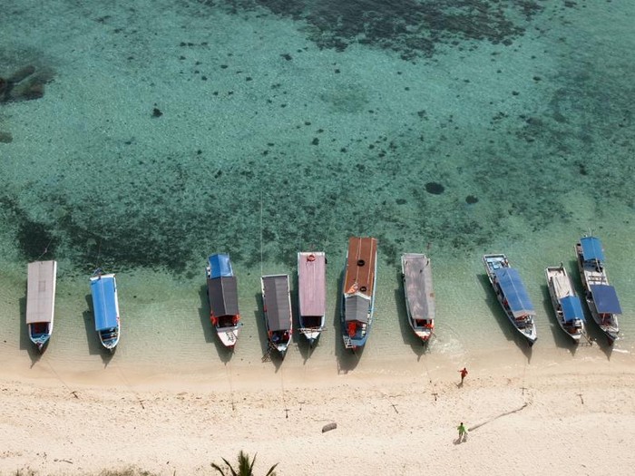 Deretan kapal yang terlihat cantik dilihat dari puncak mercusuar.