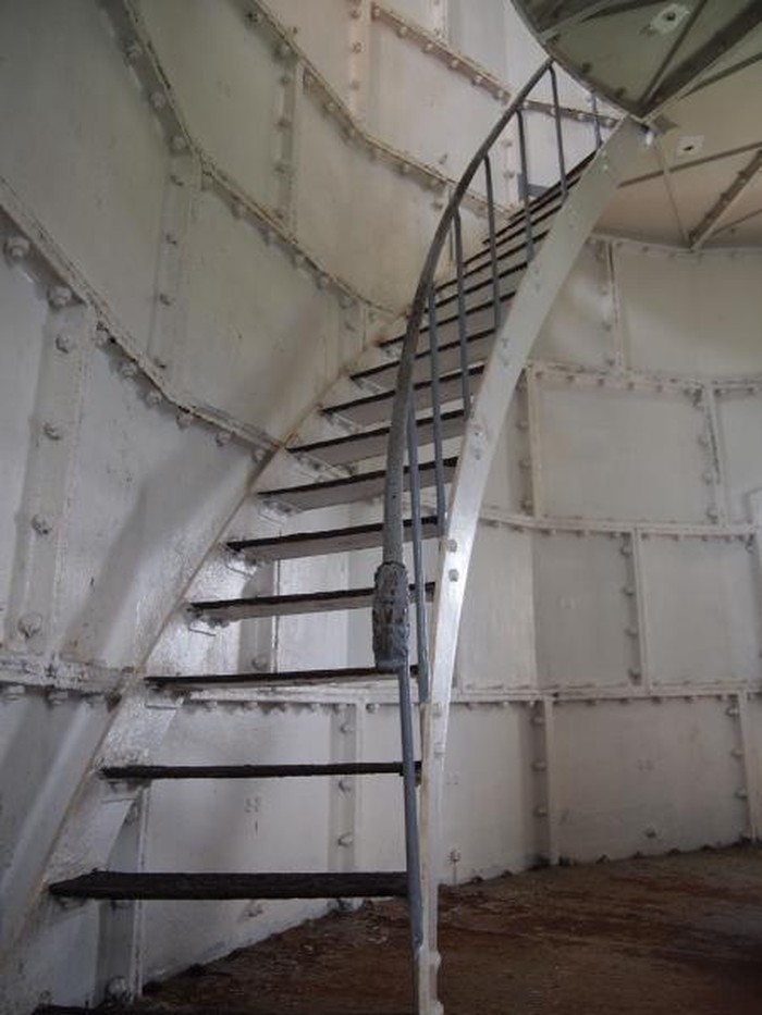 Belasan anak tangga besi ini menghubungkan setiap lantai pada bangunan mercusuar.