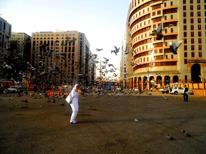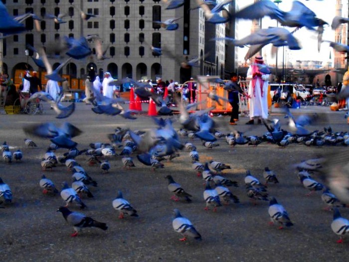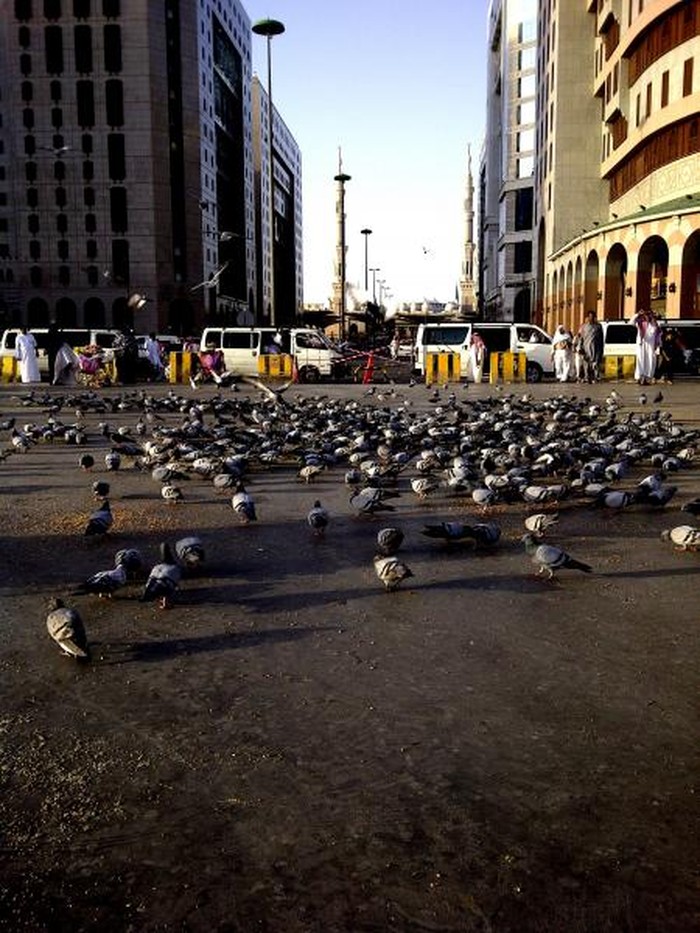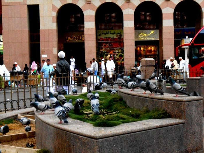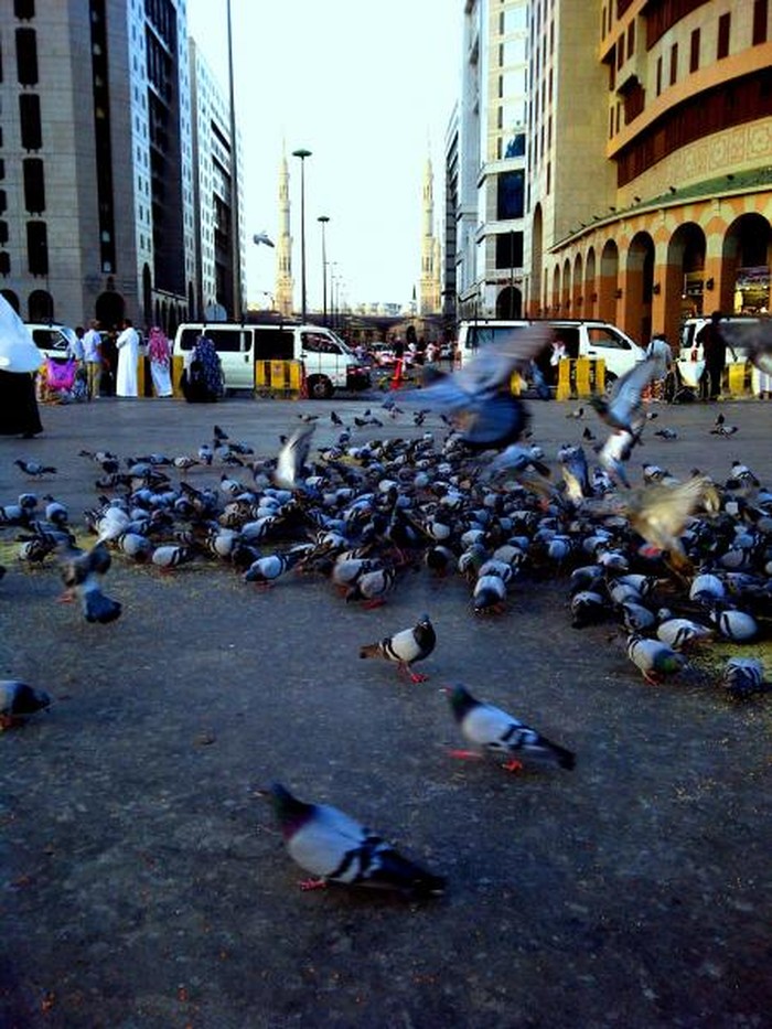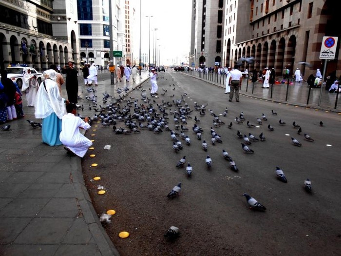 Merpat-merpati yang jinak juga berseliweran di sekitar jalanan hotel-hotel dekat Masjidil Nabawi.