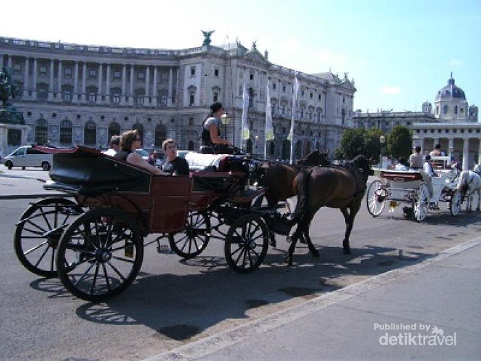 Kereta kuda, mengingatkan pada kisah Cinderella, bisa anda sewa untuk mengelilingi obyek penting di Wina.