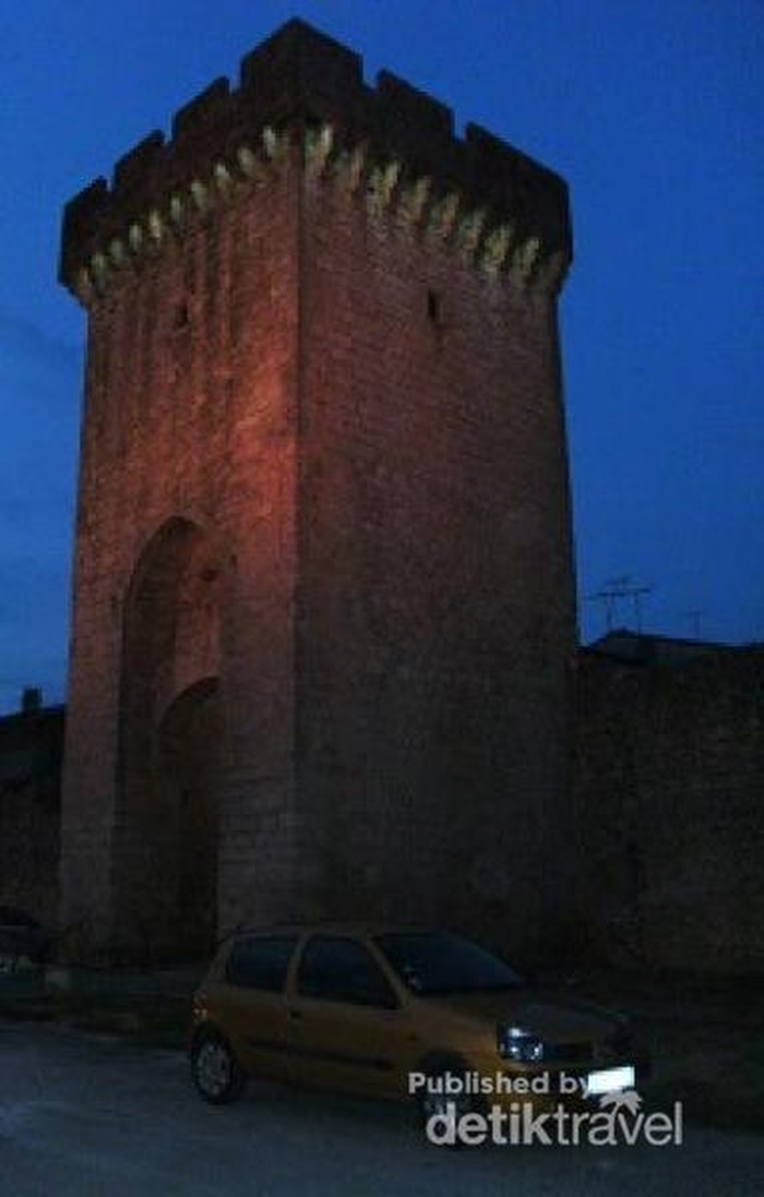 La Bastilde, Benteng pertahanan dari tahun 1315 di senja temaram di Caldillac, Perancis
