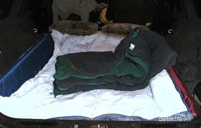 Malam ke dua diperjalanan menuju Barcelona: bagasi mobil yang disulap sebagai peraduan kami. Sesuatu yang mungkin di Indonesia tidak akan saya lakukan :-)