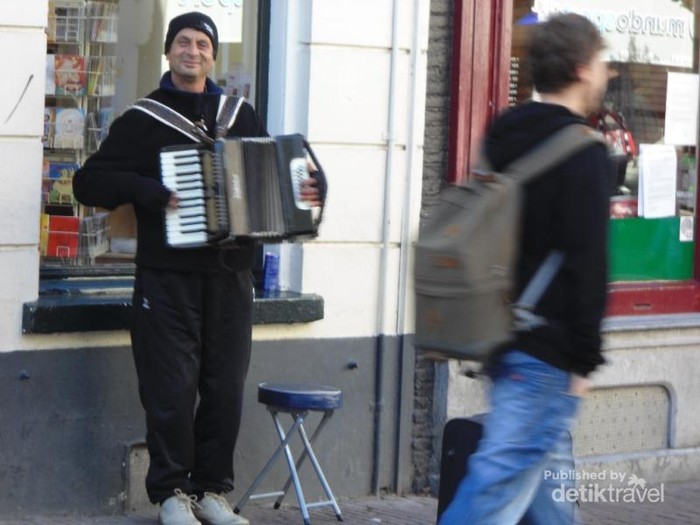 Dia adalah salah satu pengamen yang biasanya mangkal di centrum setiap hari sabtu, pas hari itu dia memainkan akordian, lain waktu dia memainkan gitar, sepertinya si bapak ini menguasai beberapa alat musik. Dan dia sadar kamera :D
