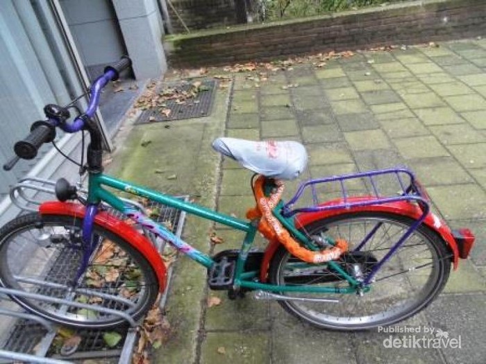 Sepeda adalah transportasi paling nyaman, murah dan sehat selama di Belanda. Ini adalah sepedaku, dan kamu benar, ini adalah sepeda anak, aku memilihnya karena ini yang paling sesuai dengan tinggiku, percayalah sepeda orang Belanda