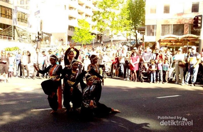 Penari India dalam acara Festival Diwali Auckland, yang diadakan di Aotea Park depan Auckland Town Hall.