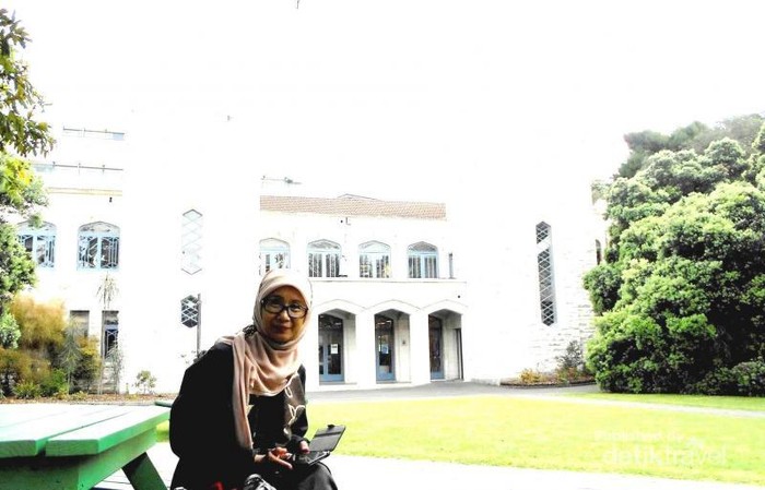 Di depan Old Government House di lingkungan kompleks the University of Auckland, Symonds Street.