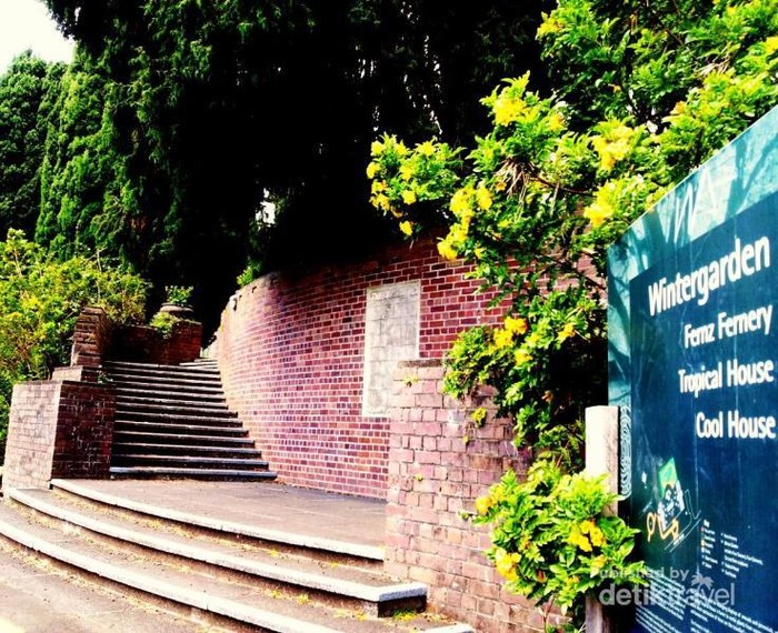 Wintergarden di Auckland Domain, dimana bunga-bunga tumbuh cantik.