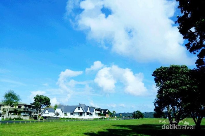 Langit biru bersih di daerah Ambury, Auckland.