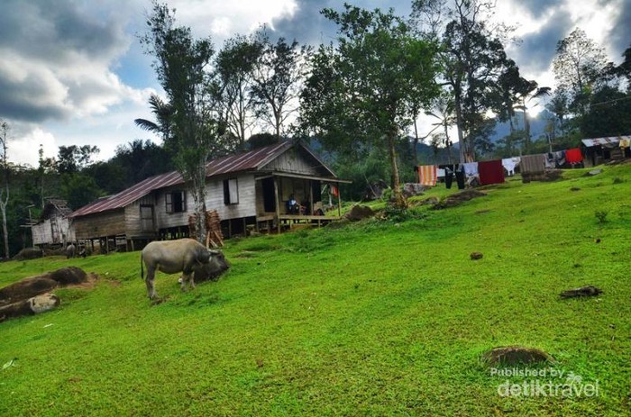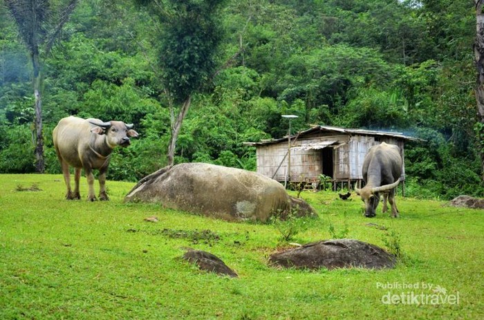 kerbau di sini dibiarkan alami mencari makan sendiri di sekitar rumah