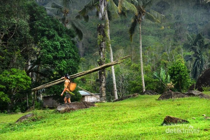 Salah seorang warga yang pulang dari hutan/sawah, dengan oleh-oleh beberapa batang kayu yang mungkin bisa digunakannya