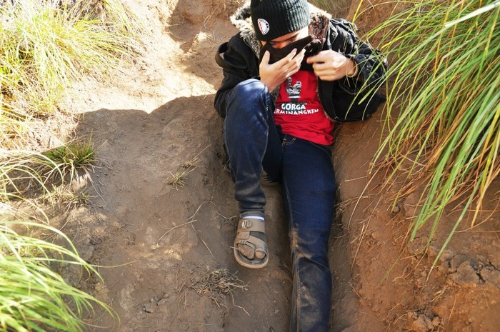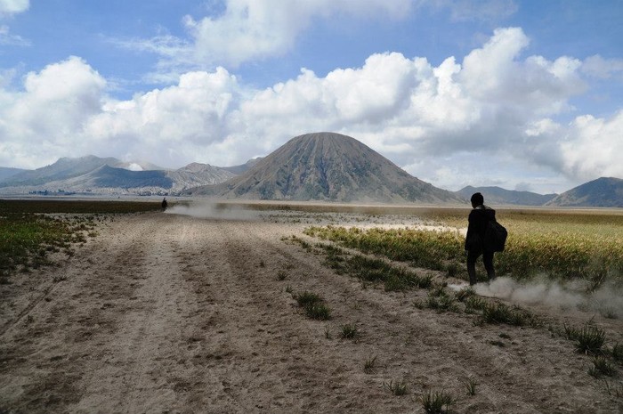 Lautan pasir Bromo mampu memikat hati traveler. Bayangkan, sebuah daratan luas dipenuhi dengan hamparan pasir hitam. Ditambah, ada pemandangan Gunung Bromo dan awan biru yang terlihat sangat cantik. Ayo, ke Bromo!