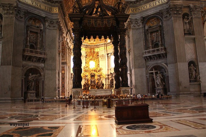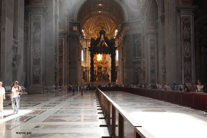 Cahaya yang masuk ke dalam St. Peter's Basilica menambah suasana magis