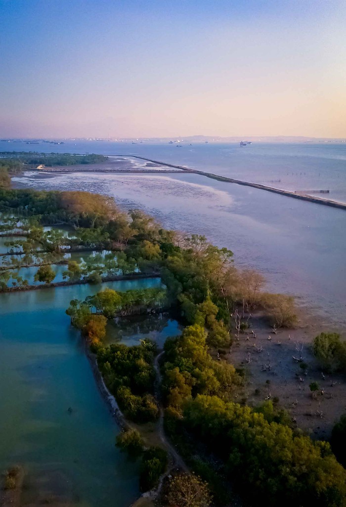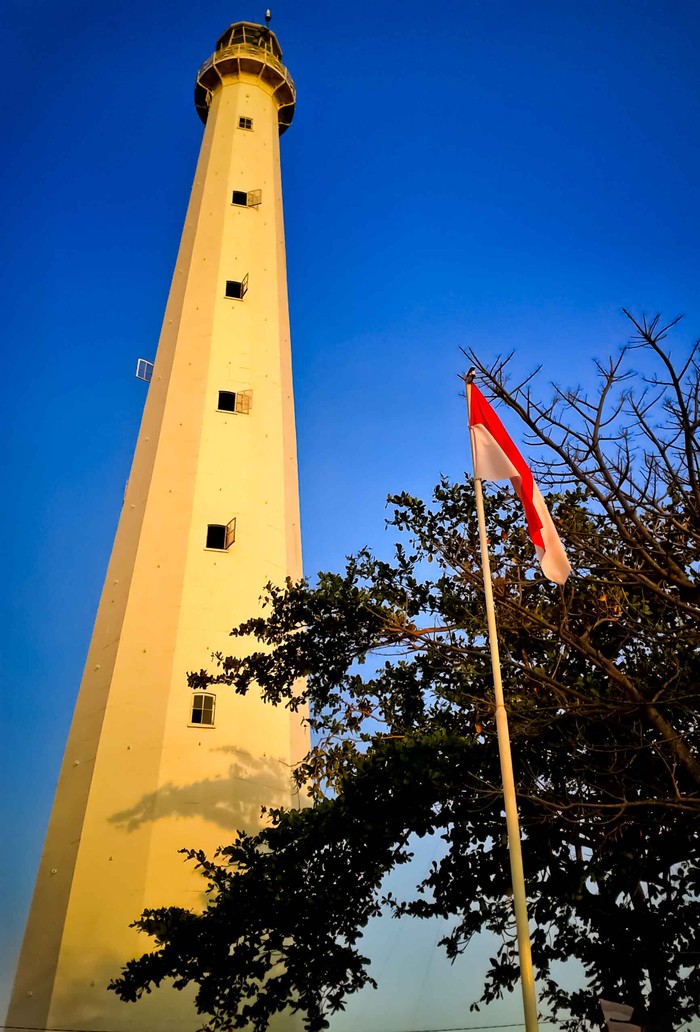 Indahnya Pantai Sembilangan, Madura memang sudah memukau. Namun, pemandangan tersebut bisa terlihat makin sempurna dari puncak mercusuar.