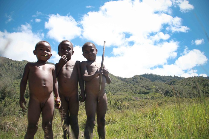 bocah-bocah cilik suku dani. Bermain dengan bebas di lembah baliem, bermain dengan miniatur panah dan busur menjadi kegemaran mereka.