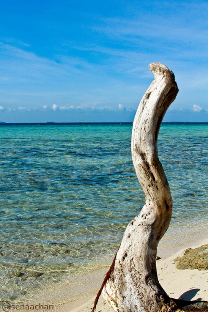 Batang pohon yang mengering di Pantai Pasir Perawan