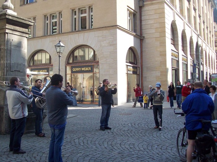 Pengamen di Leipzig memainkan musik gubahan Bach (Fitraya/detikTravel)