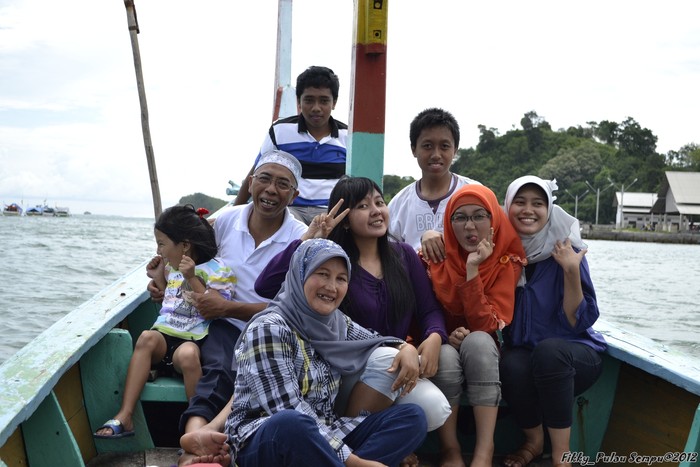 Naik kapal bersama keluarga.