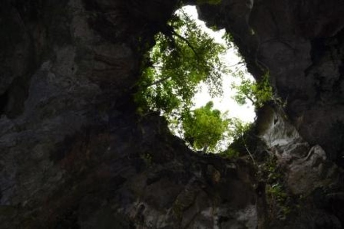 Hampir sampai di pintu keluar, saya melihat ada celah besar yang berada tepat di atas gua