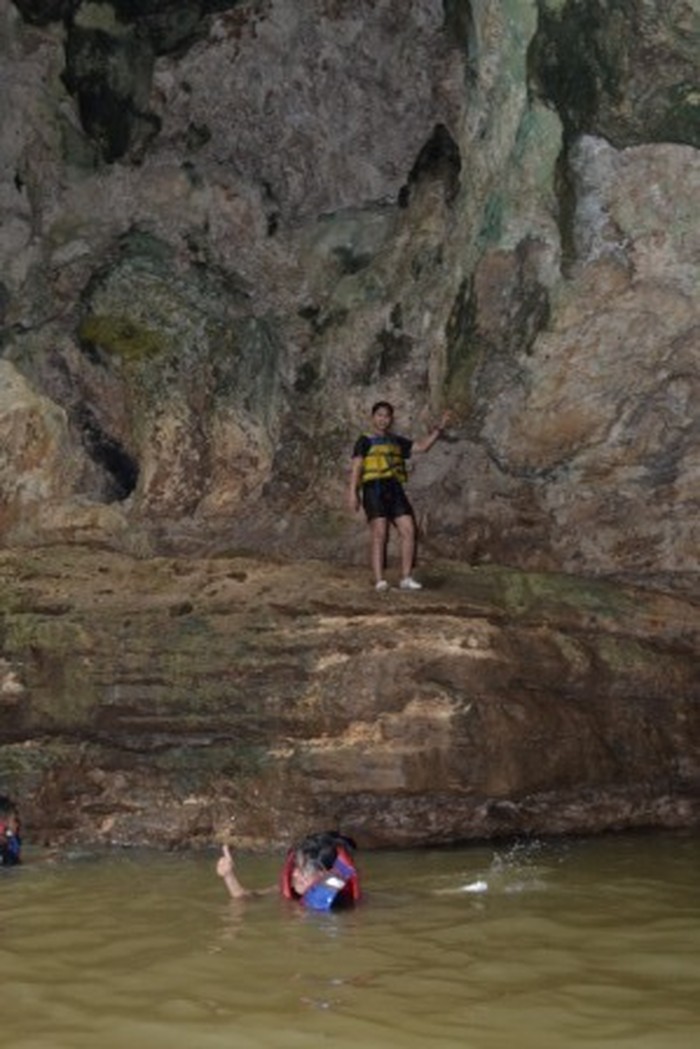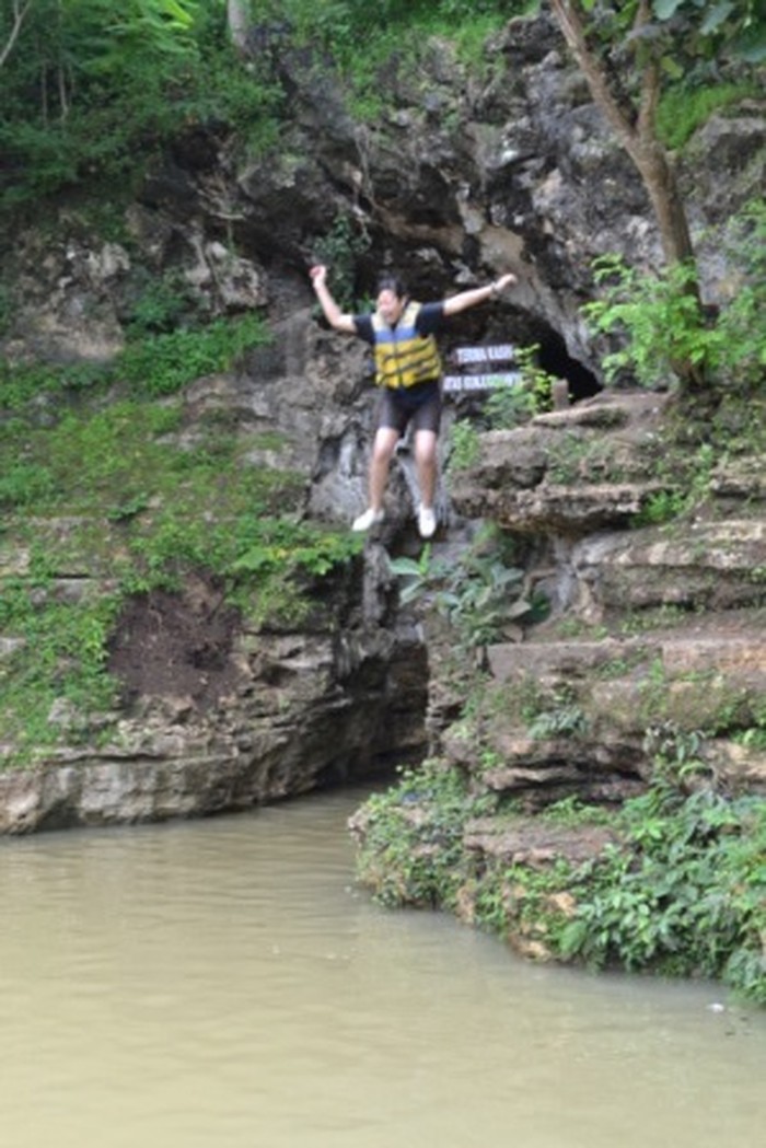 Sebelum keluar, kami diuji nyalinya untuk melompat dari dinding gua