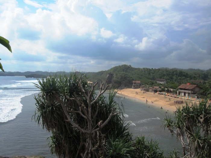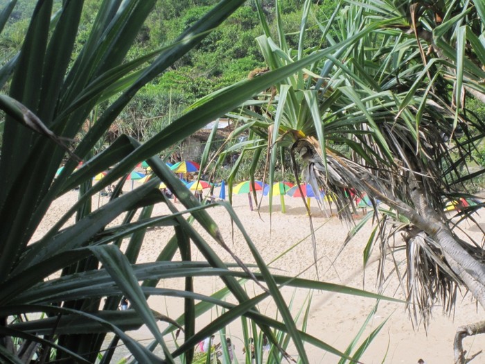 Pantai Indrayanti dari balik pohon pandan di atas tebing