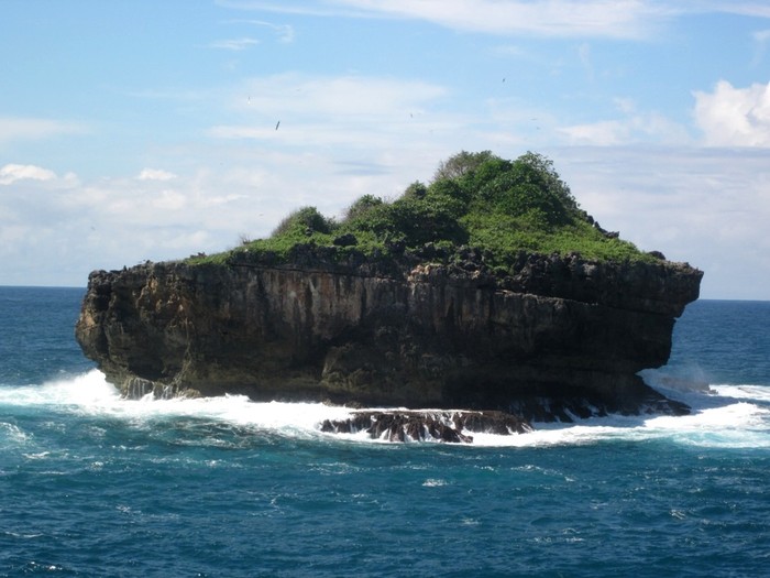 Pulau karang di tengah laut dihuni banyak kelelawar