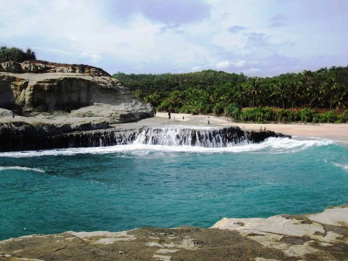 hempasan ombak yang menghasilkan efek air terjun panjang
