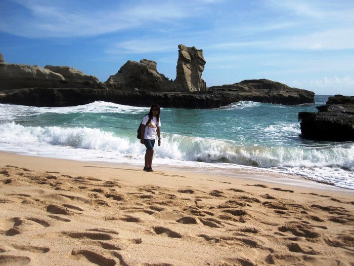 Hijaunya air laut di Laguna di antara 2 tebing bebatuan