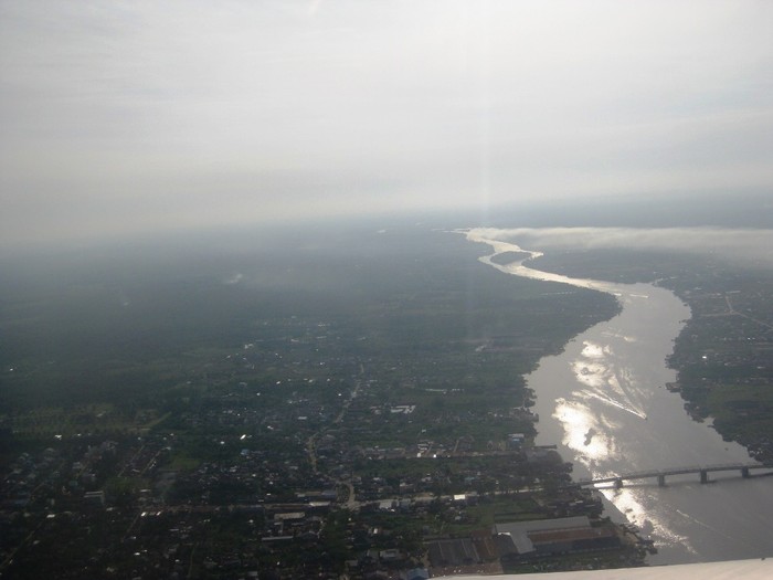 Pemandangan dari pesawat sesaat sebelum mendarat di Pontianak.