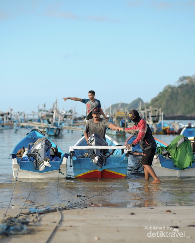 Banyuwangi - Inilah gambaran dari nelayan Desa Pancer, Pesanggaran, Banyuwangi. Mereka sedang menurunkan ikan dari atas kapal slerek maupun kapal jukung.