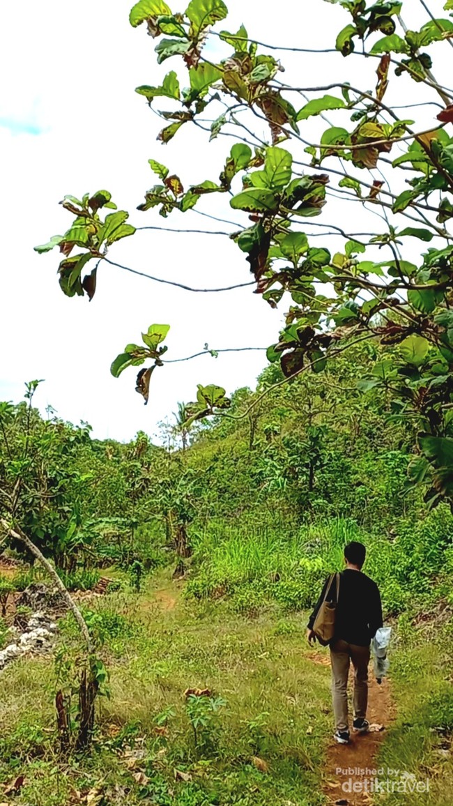 Gunungkidul - Jika ingin ke pantai Ngrawah, traveler harus melewati perbukitan dengan berjalan kaki 40 menit. Medan yang ditempuh juga cukup berat. Cantik tapi tersembunyi!