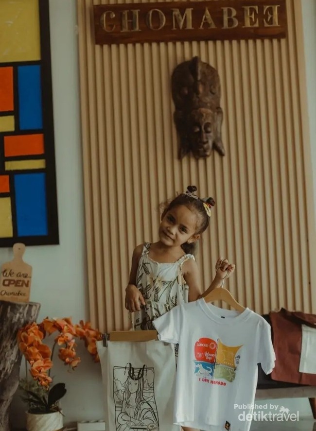 Jakarta - Mengenal budaya Manggarai dan Flores bisa langsung datang ke art shop Chomabee di Labuan Bajo. Desain kaosnya unik-unik.