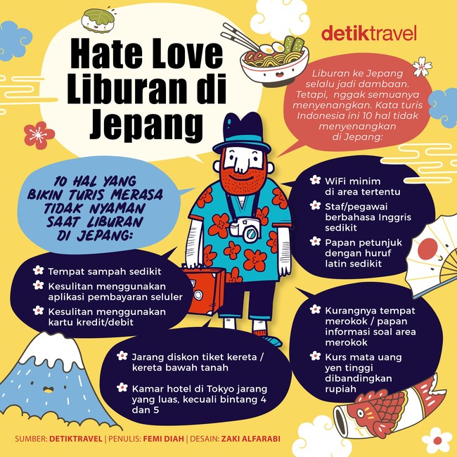 Jakarta - Liburan ke Jepang selalu jadi dambaan. Tetapi, nggak semuanya menyenangkan. Kata turis Indonesia ini 10 hal tidak menyenangkan di Jepang: