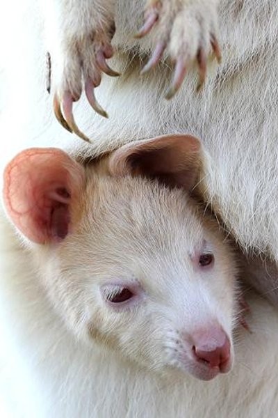 Australia terkenal dengan hewan kanguru. Biasanya, kanguru yang dilihat memiliki warna tubuh cokelat. Namun, di Featherdale Wildlife Park, Doonside, New South Wales, wisatawan berkesempatan bertemu dengan kanguru albino. Rambut putih menyelimuti seluruh tubuhnya.
