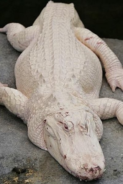 Di The New California Academy of Sciences, San Francisco wisawatan bisa melihat buaya albino. Seluruh kulitnya berwarna putih. Saking putihnya, tubuh buaya ini sedikit kemerahan yang berasal dari darah di bawah jaringan kulit.