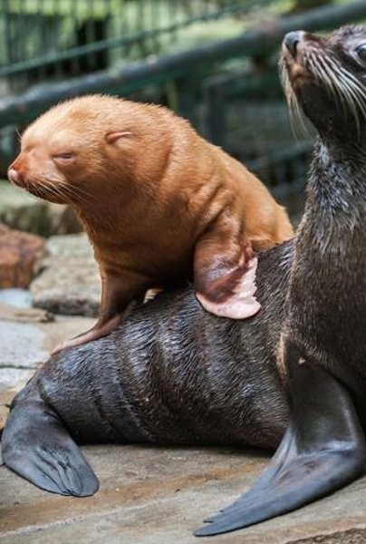 Kalau singa laut biasanya bertubuh hitam, kebun bintang di Dortmund, Jerman punya koleksi yang berbeda. Salah satu singa laut miliknya beranak albino. Seluruh tubuhnya berwarna cokelat yang kontras dengan tubuh induknya.